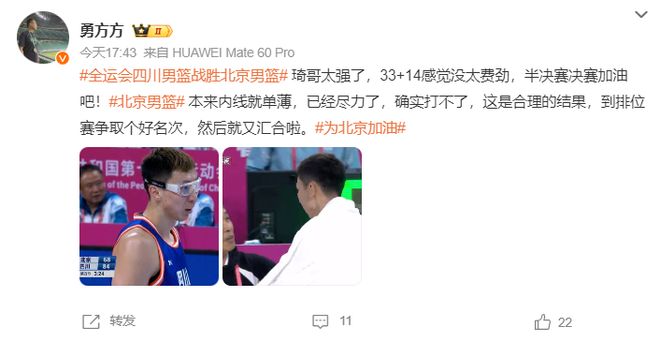 北京记者勇方方赛后高呼:周琦太强了, 拿到33+14感觉都没有怎么费劲儿。
