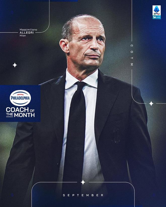 带队三连胜!官方:米兰主帅阿莱格里当选意甲9月最佳教练