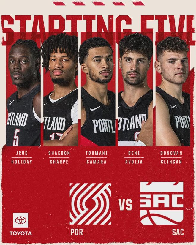 杨瀚森不在列,开拓者季前赛对勇士首发出炉:霍勒迪联手克林根出战